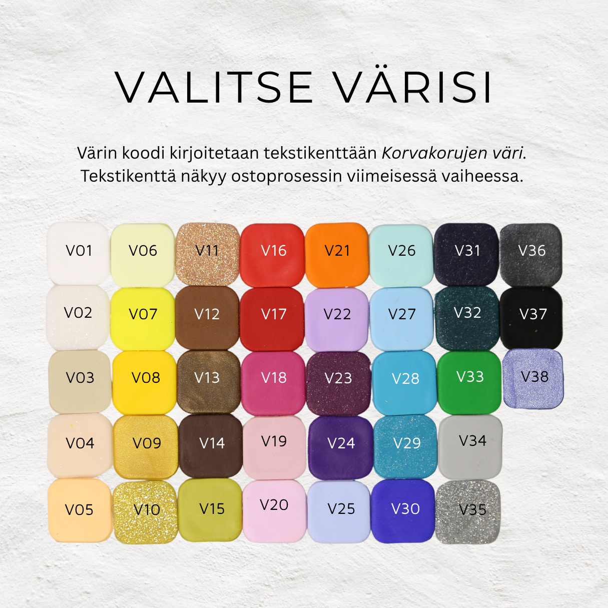 - Korvakorutapit: kirurginteräs, 18k kultaus
